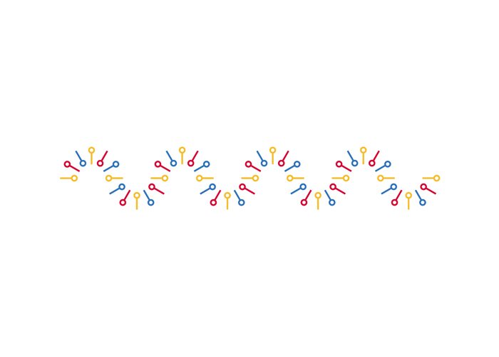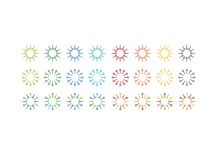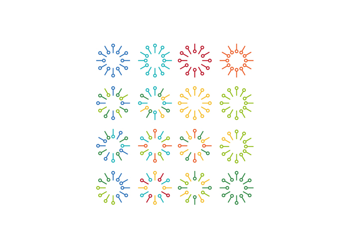 三、非固定循環之表現形式本創作在非固定循環類別中所使用的動作方式採用「互動」的方式進行,透過研究個案中所使用的概念,將採用客製化標誌進行設計。本創作將標誌區分出科技組為藍與綠色系,設計組為黃與綠色系,由製訂出的7種顏色中搭配標準輔助色彩,各以5種色彩作變換。由於非固定循環需經由讀取資料數據後作變化,來作為本創作的「互動」方式,在第一階段會區分使用者身分為設計組或科技組,在第二階段會索取使用者身分證字號後4碼與學號後2碼,最終產生出使用者專屬標誌。