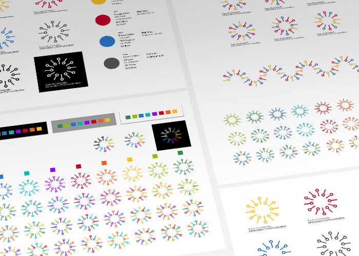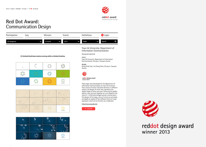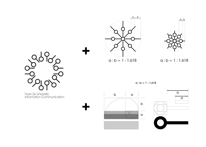 本創作利用時限性、循環、非固定循環與靜止四種不同時間表現形式,來呈現企業標誌理念。 本創作研究將依照Balmer (2006) 企業識別6Cs概念,分析元智大學資訊傳播學系之理念,標誌設計針對資訊、訊號、傳播抽象概念來發想,識別標誌便以資訊符號與數位傳播概念結合,以結點連結、結點延伸、線條來表示資訊符號之概念,並運用形態、造型、色彩、字型、比例與構成、肌理元素設計。在基本元素構成中,元素的厚度取自於鸚鵡螺殼的結構之比例,標誌的0與1的元素且透過1:1.618 之黃金比例所構成,標誌一以中心向外擴張12個單位元素來組成,象徵孕育全方位之人才。本創作在10種設計樣式中選出6種設計之初稿,並在其中選出2種標誌作為後續標誌製作,選出2種標誌並透過比例原則的概念進行修改。