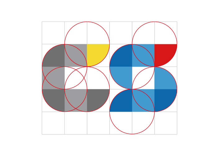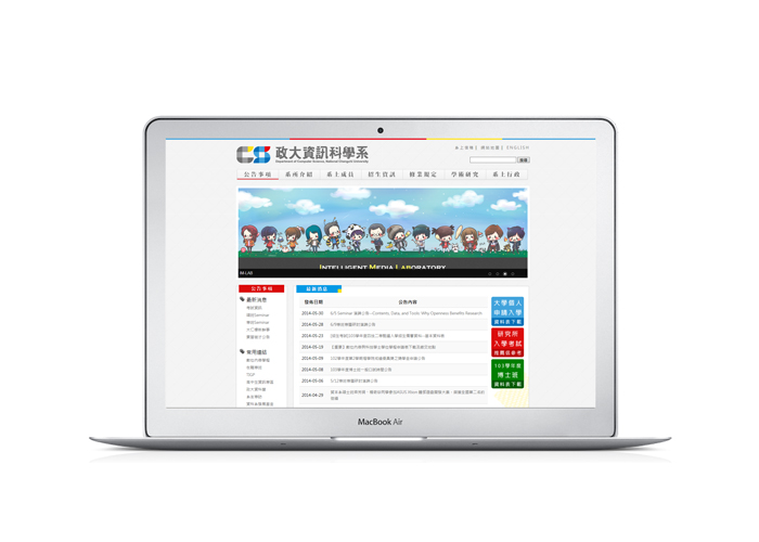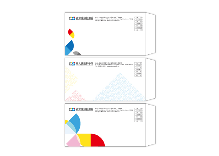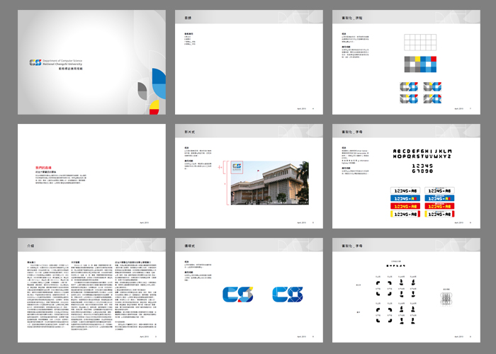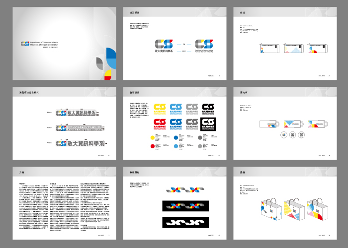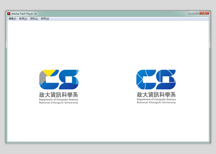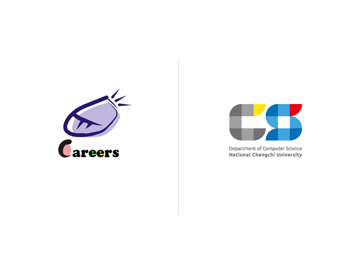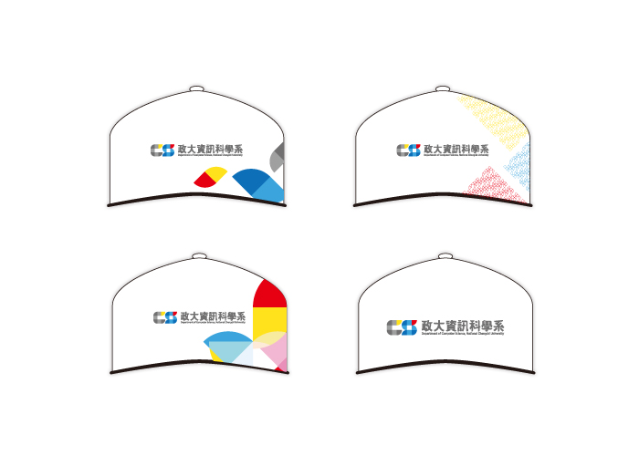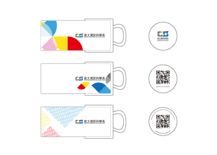 政治大學資訊科學系識別標誌以拼圖概念,組合出縮寫資訊科學系英文字母CS 字樣,並透過1:1 等比例構成,字母弧形組合方式透過相等之四個圓形組成,在視覺上具有平衡的美學概念。