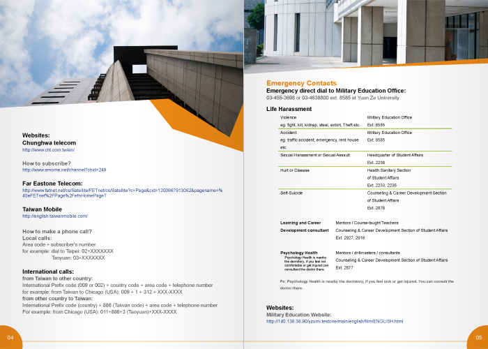 本專案為給予元智大學外國交換生之手冊,內容介紹校園及周邊食衣住行相關資訊。